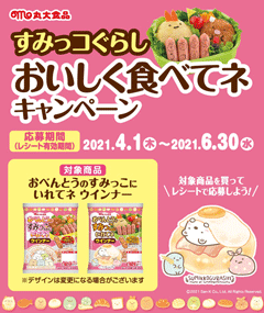 丸大食品より、すみっコぐらし おいしく食べてネ キャンペーンが始まりました。