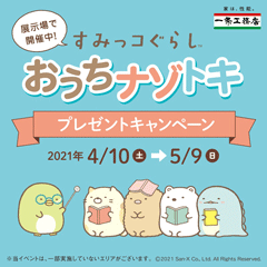 4月10日(土)〜5月9日(日)の期間、一条工務店の展示場で「すみっコぐらしおうちナゾトキキャンペーン」を開催!
