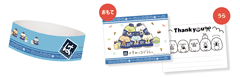 お持ち帰り商品ご注文につき、はま寿司の制服を着た"すみっコ"たちが描かれた「ぬりえメッセージカード」と「なりきり帽子」をプレゼントします。