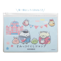 すみっコぐらしshop東京駅店にて、すみっコぐらし商品3,000円(税込)以上お買い上げのお客様に先着で「ジッパーケース」をプレゼントいたします。