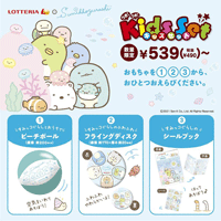 「すみっコぐらし」の『キッズセット』では、「ビーチボール」「フライングディスク」「シールブック」の3種類の中から好きなおもちゃをひとつ選べます♪