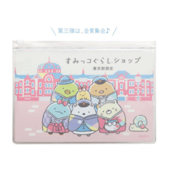 すみっコぐらしshop東京駅店にて、すみっコぐらし商品3,000円(税込)以上お買い上げのお客様に先着で「ジッパーケース」をプレゼントいたします。