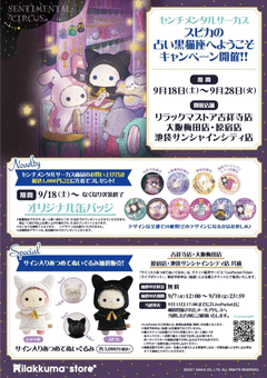 リラックマストア吉祥寺店・大阪梅田店・原宿店・池袋サンシャインシティ店にて9月18日からセンチメンタルサーカスのキャンペーンを開催します!
