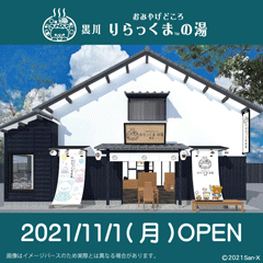 「リラックマ×温泉」をテーマにした常設店舗の3号店「おみやげどころ 黒川 りらっくまの湯」を熊本県・黒川温泉にオープンいたします!
