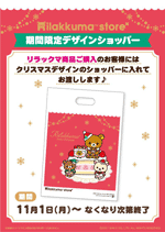 さらに!11月1日よりリラックマストアにてリラックマ商品をお買い上げのお客様には、クリスマスデザインのショッパーに入れてお渡しします♪