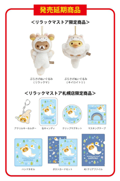 及び、リラックマストア札幌店限定 スーベニア雑貨(全7種)について、諸般の事情により発売日を延期させていただくこととなりました。