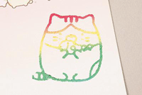 シールをはがして、キラキラのシートを指でこすると、すみっコたちのシールができちゃうよ!