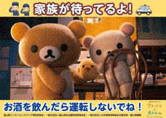 リラックマが『家族が待ってるよ!お酒を飲んだら運転しないでね!』と飲酒運転の自制を呼びかける啓発ポスターのモデルになりました。