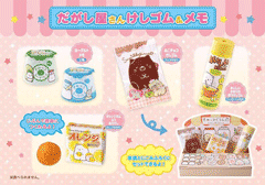 みんなの大すきなだがしが、かおりつきのけしゴム&メモになったよ!