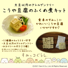 すみっコぐらしの可愛いキャラクターが印字されたこうや豆腐の含め煮キットの発売です♪