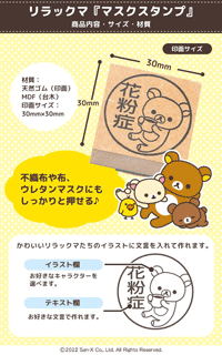 「リラックマ マスクスタンプ」は、かわいらしいリラックマのキャラクターに好きな文字や名前を入れてつくる、リラックマ好きにはたまらないオーダーメイドのマスクスタンプ。