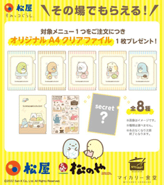 2022年3月29日より全国の松屋・松のや・マイカリー食堂で、すみっコぐらしコラボ企画がスタートします♪!