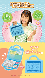 全部しまえる収納ケースや貼ってはがせるシール台紙、作業シートにもすみっコぐらしがいっぱい♪