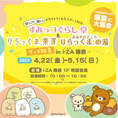 2022.4.22(金)〜2022.5.15(日)の期間、すみっコぐらし堂&りらっくま茶房・りらっくまの湯の限定グッズをi-ZA鎌倉にて出張販売致します!!