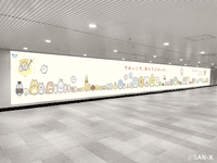 ずらりと並んだすみっコたちがカワイイ、10周年記念広告を駅構内で展開します。