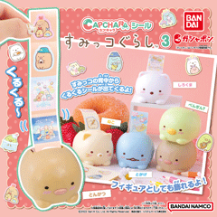 すみっコの背中からくるくるシールが出てくる「カプキャラシール」が全国のカプセル自販機にて、発売中です♪