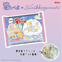 "ばかうけ""瀬戸しお"など米菓を製造販売する褐I山米菓の"星"の形のおせんべい「星たべよ」と「すみっコぐらし」がコラボした商品です♪