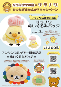 リラノワ認定店舗でリラックマのぬいぐるみバッジを発売です♪