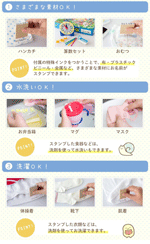 布やプラスチック、ビニール、金属などあらゆる素材にスタンプできる専用インクは、かわいいすみっコたちがなかよくお勉強しているとってもキュートなデザイン!
