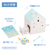 万華鏡ケースに星くずビーズやキャラクターフィルムを入れてから、おへやの電気を消して本体のスイッチを入れると、天井にすみっコたちが映し出されます☆
