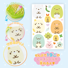 付属のペンを使ってカラフルなビーズをシートの番号どおりに貼っていくだけで、キラキラかわいいすみっコぐらしのビーズシールが完成!