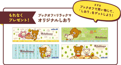 東京・神奈川のブックオフの対象店舗で1,000円(税込)以上のお買い物をして「ブックオフ×リラックマ オリジナルしおり」をもらって応募しよう!