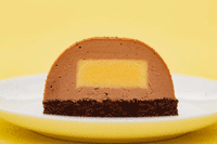 ミルクチョコレートのムースの中に、リラックマの好物のプリンを閉じ込めました!