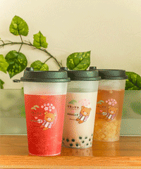 いちごとナタデココの特製ソースをピーチティーで割った甘酸っぱい味わい!