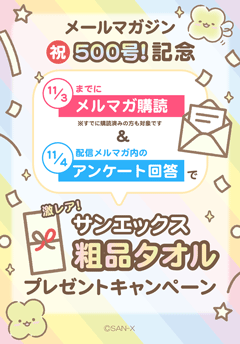 ★☆サンエックスネットメルマガが、11月4日(金)の配信で500号を迎えます☆★