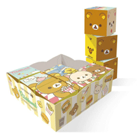 リラックマたちの顔をデザインしたつみきと、2パターンのイラストのパズルが楽しめます♪