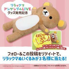 リラックマアンサンブルLIVEで開発したグッズの発売を記念して、Twitterフォロー&リツイートキャンペーンを開催します♪