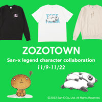 今年で創業90周年を迎えるサンエックスのレジェンドキャラクター!たれぱんだ、こげぱん、アフロ犬、モノクロブーのコラボアパレルアイテムがZOZOTOWN限定で発売♪
