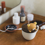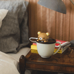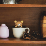コーヒーカップに入ったリラックマが、ゆったりくつろぐ姿がかわいすぎるデザイン。