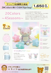 いつもリラックマを大切にしてくれているあなたへ届けたいぬいぐるみシリーズ「Rilakkuma 20Colors〜4Seasons〜」にリラノワ認定店舗限定カラーが登場☆