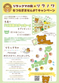 リラノワ認定店舗にて、リラックマ商品を税込1,100円以上お買い上げの方に先着で「ご当地ステッカー」をプレゼント!