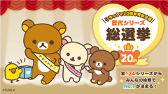 リラックマ20周年を記念して、リラックマ歴代シリーズ総選挙の1次予選の投票がスタート☆
