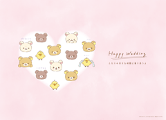 裏面はさまざまな表情を見せるリラックマと仲間たちとともに、「ふたりの幸せな時間に寄り添うよ」とメッセージが添えられた癒されデザインに♪
