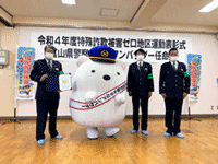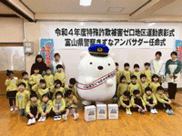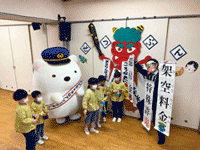 2023年2月3日(金)に富山市内の保育園にて行われた委嘱式には、すみっコぐらしを代表して、警察の帽子をかぶった「しろくま」が登場しました☆