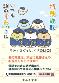 すみっコぐらしが、富山県内での特殊詐欺被害防止に向けた新たな取り組みとして、アンバサダーを務めます!