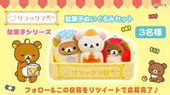 『リラックマ駄菓子シリーズのぬいぐるみ発売記念☆リラックマごゆるりサイト公式Twitterフォロー&リツイートキャンペーン』