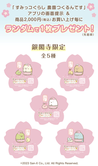 配布店舗:すみっコぐらし堂各店・オンラインストア ※銀閣寺店は対象外になります
