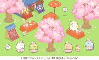 すみっコぐらし堂デザインの桜のエプロンの着せ替えや、すみっコぐらし堂の『のれん』など、桜のお花見にぴったりなデコアイテムが登場します☆