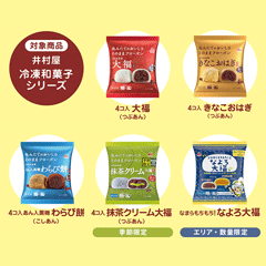 ※井村屋ウェブショップでは、冷凍和菓子1セット以上ご購入の一口に対して1枚プレゼントとなります。