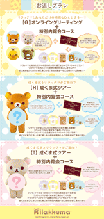 なかでも大注目はリラックマたちとあなただけの特別なひとときを楽しめる "オンライングリーティング"プランや、リラックマ・コリラックマが「成くま式」を案内してくれる"成くま式ツアー"のプランです☆