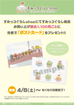 すみっコぐらし商品お買い上げ税込1,100円ごとに先着で「ポストカード」をプレゼントいたします。