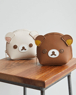 リラックマとコリラックマのフェイスデザインのミニポーチ。