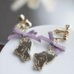 リラックマのメタルモチーフと小さなサテンリボンを合わせたイヤリング。