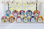 キャラクター部分は、貼り絵のようにあじさいの花びらを1枚ずつ貼り合わせることで表現。