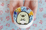 キャラクターがお花のすみっこにいるような構図が楽しい、コロンとかわいいアレンジメントです♪
