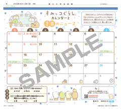 すみっコぐらしとコラボレーションしたニュースカレンダーで、その月のニュース予定やイベントがわかります!